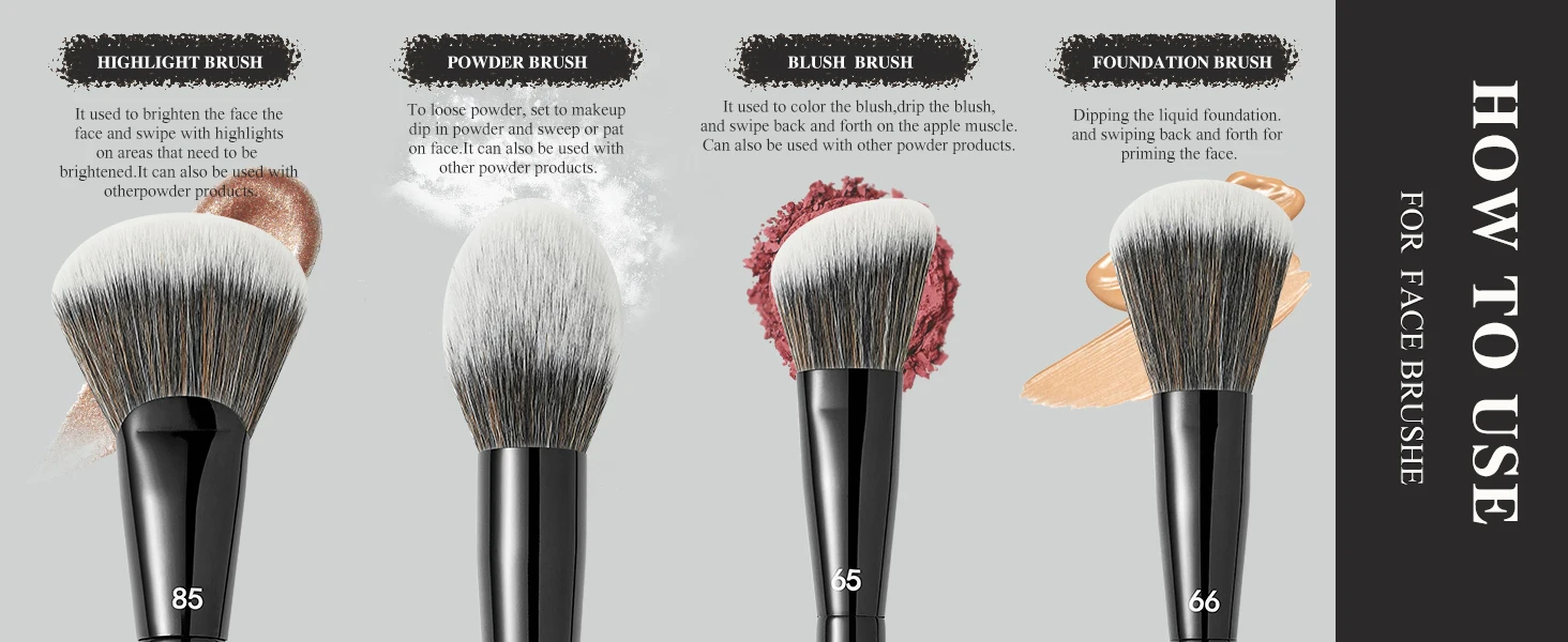 Used With: Blusher,Concealer,Eye Shadow,Eyeliner,Foundation,Lip,Powder,Sets & Kits,Sculpting Brush,Highlighter Brush,Eyebrow Brush